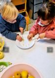 Mardi les tps ps ms ont travaillé transformé les pommes cueillies dans le jardin en délicieuse compote de pommes.